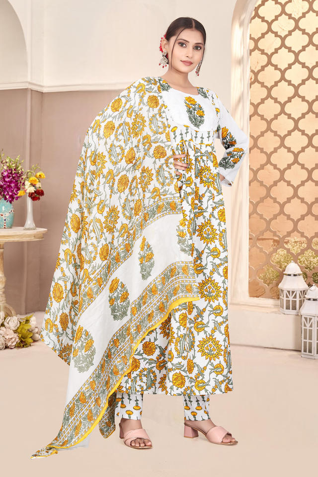 ชุดคุर्ตาพิมพ์ลายคอกลมสีขาวสำหรับผู้หญิง ยี่ห้อเมจิก จำหน่ายจำนวนมาก เป็นมิตรกับสิ่งแวดล้อม สไตล์ชาติพันธุ์