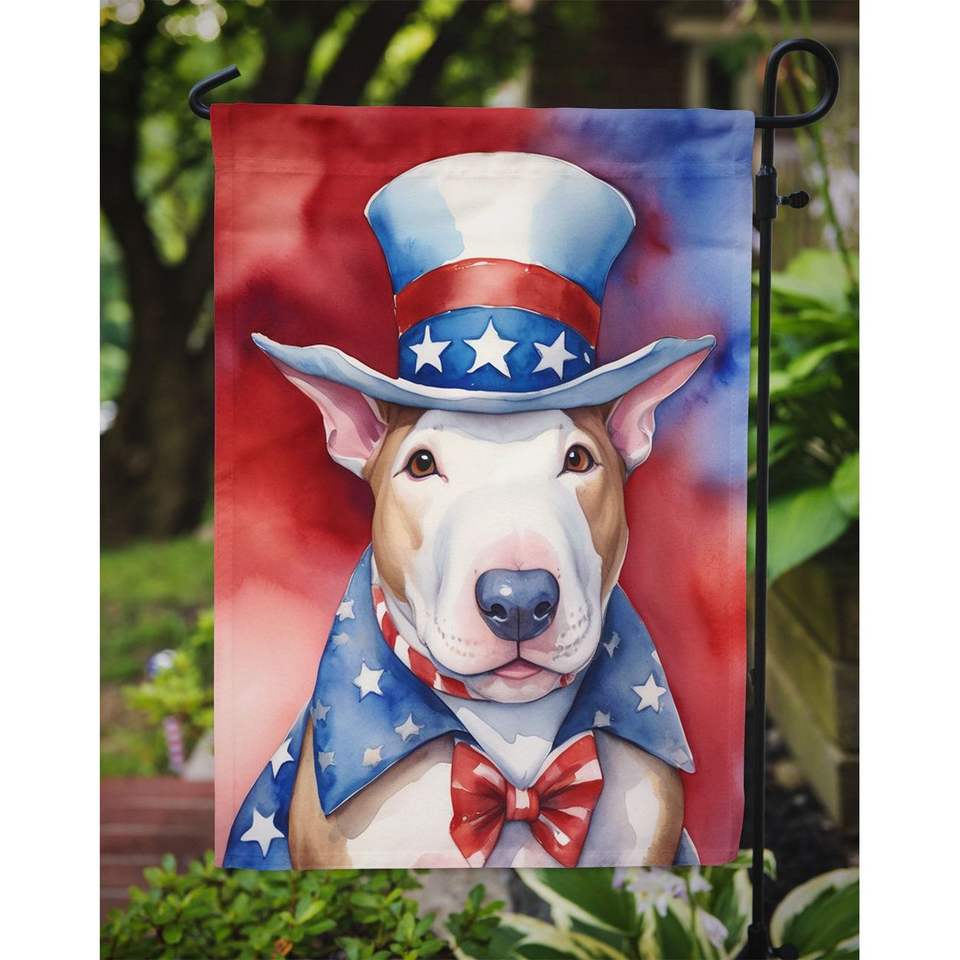 Bull Terrier รักชาติอเมริกันธงสวนหลากสีสำหรับตกแต่งลานธงแบนเนอร์สำหรับลานงานศิลปะสำหรับเตียงดอกไม้