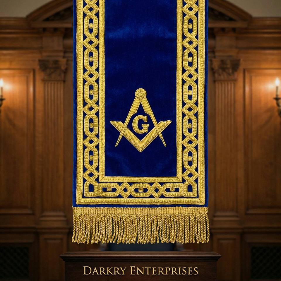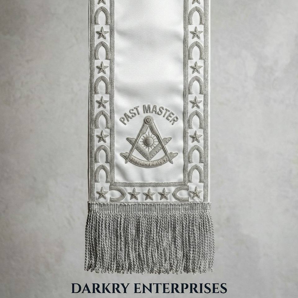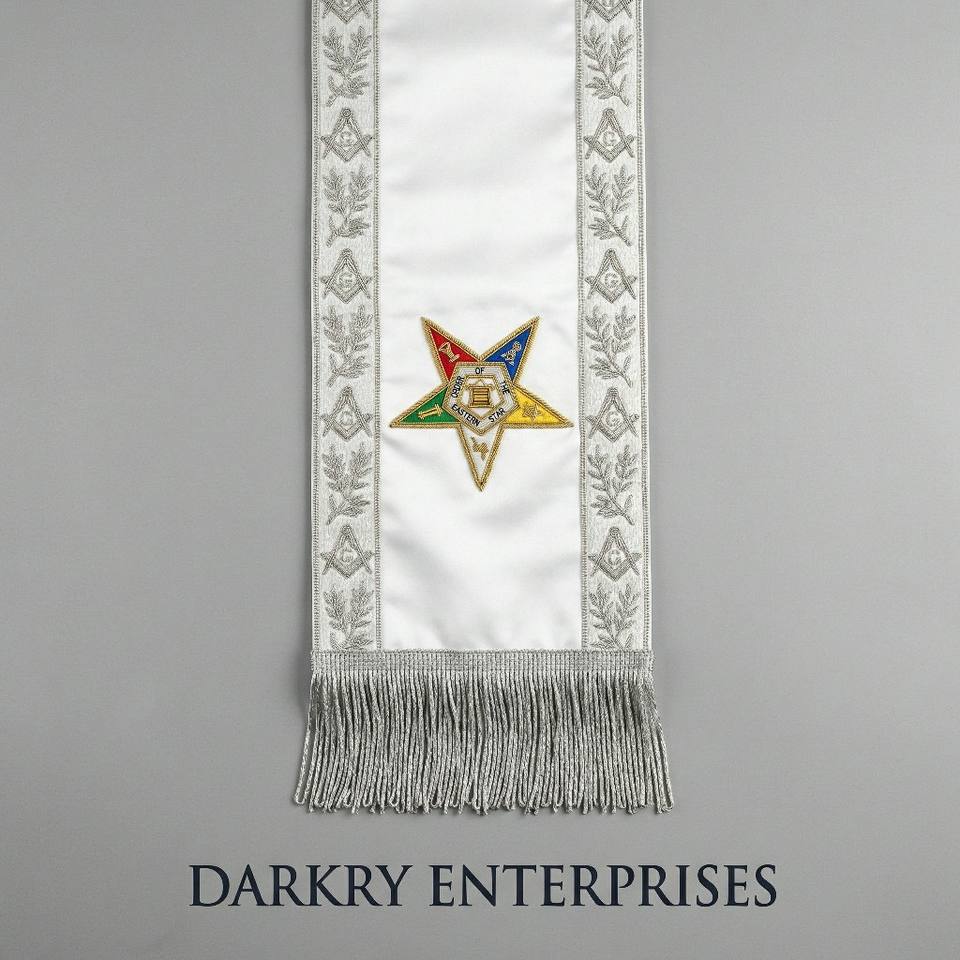 งานปักเส้นลวดแท่งใหญ่สายสะพายเครื่องราชกกุธภัณฑ์ออกแบบได้ตามต้องการสายสะพายสีขาวลายอิฐเย็บขอบสีเงิน