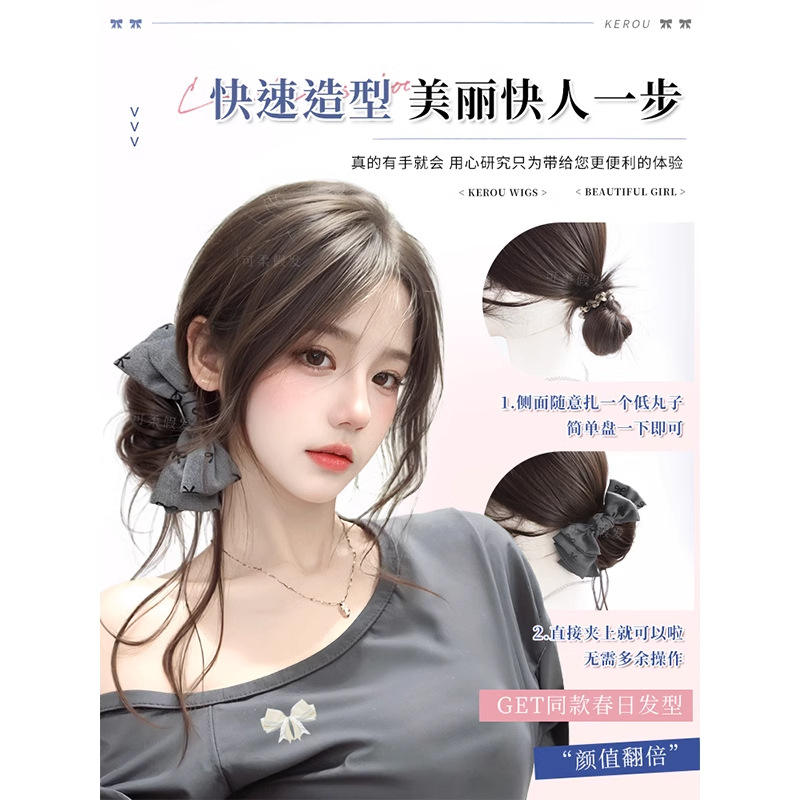 วิกผมทรงบันพร้อมโบว์ ปิ่นปักผมทรงหนวดมังกร วิกผมฟูเป็นธรรมชาติ เพิ่มวอลลุ่ม สำหรับผู้หญิง