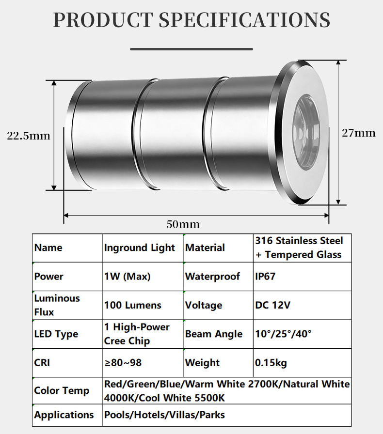 ชุดไฟ LED ฝังดิน INGROUND-25 สำหรับตกแต่งภูมิทัศน์ กระจกนิรภัย 100 ลูเมนส์ แสงวอร์มไวท์ เหมาะสำหรับวิลล่า สวนสาธารณะ ปริมาณสั่งซื้อขั้นต่ำน้อย รับสั่งทำตามแบบ