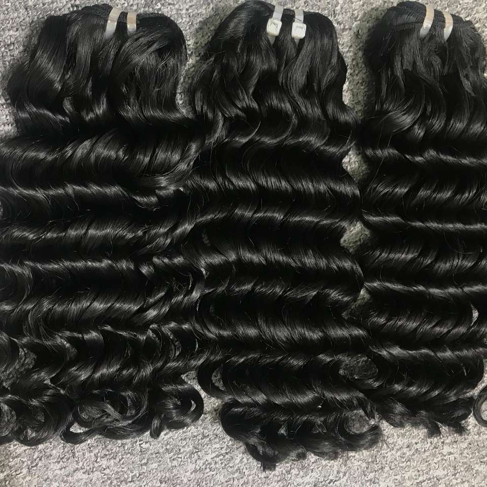 Vietnamese Natural Deep Wave Raw Human Hair Extensions Bundle Weft 100g Double Drawn One Donor Hair Weaving Closure