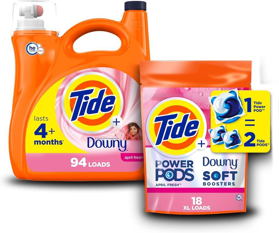 Bundle of Tide plus Downy Liquid Laundry Detergent Soap, April Fresh Scent, HE Compatible, 94 Loads, 132 fl oz