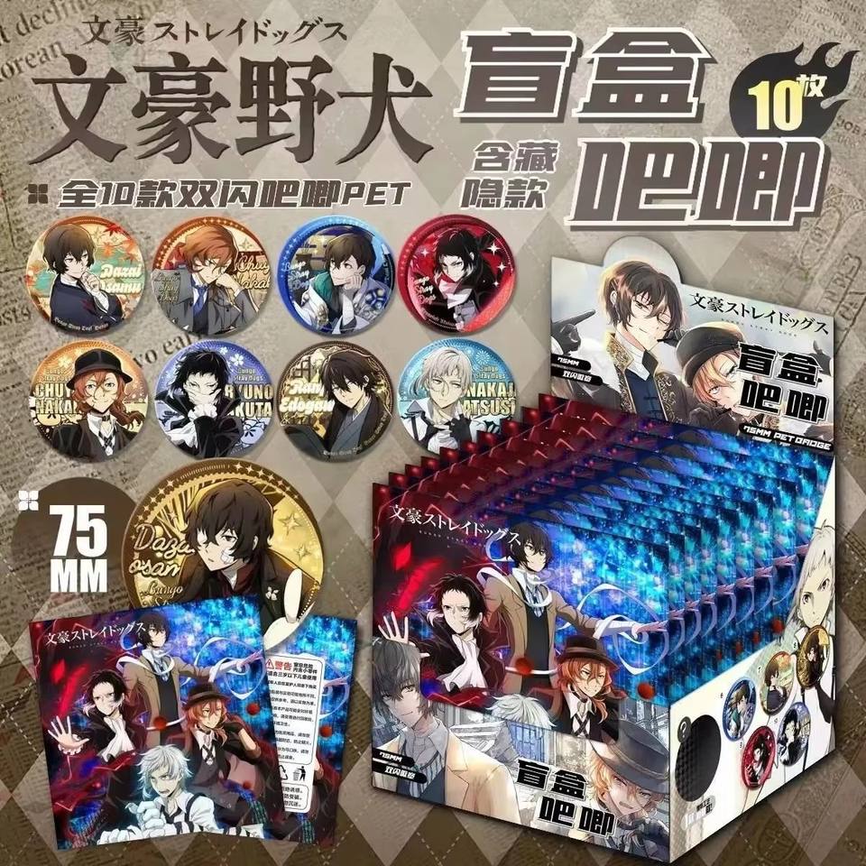 Bungos ปิ่น stray dogsed กล่อง blind blind blind 75มม. หมุดแฟลชคู่ Dazai Osamu Edogawa ranpo อะนิเมะสินค้างานฝีมือโลหะ