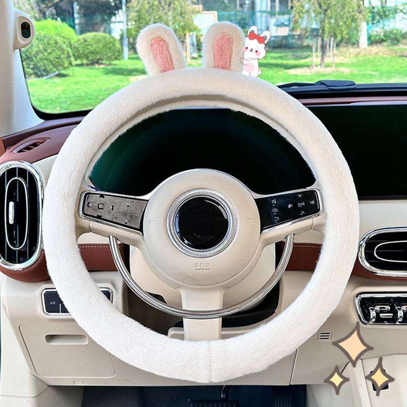 ปลอกหุ้มพวงมาลัยหูกระต่าย ผ้าขนแกะนุ่ม สำหรับฤดูหนาว อุ่นและป้องกันการแข็งตัว