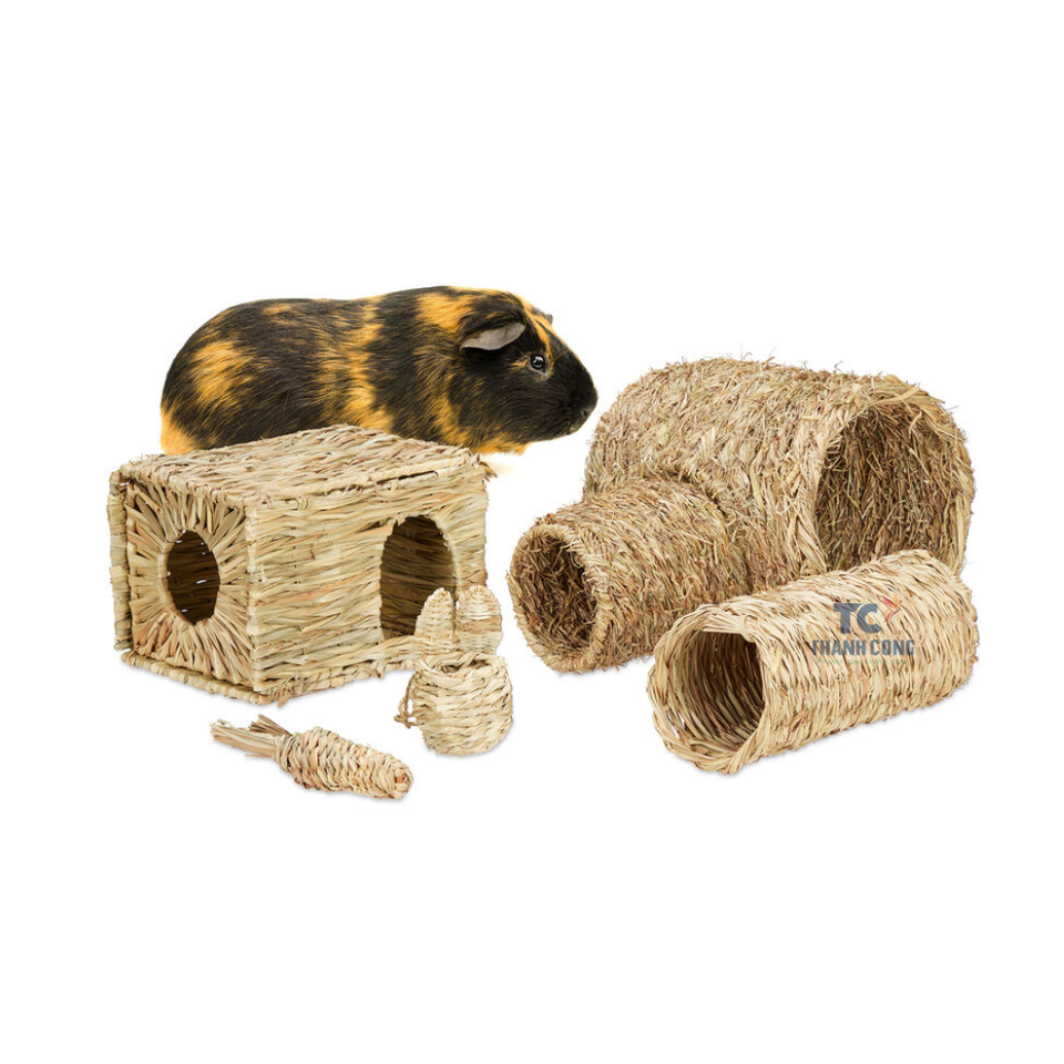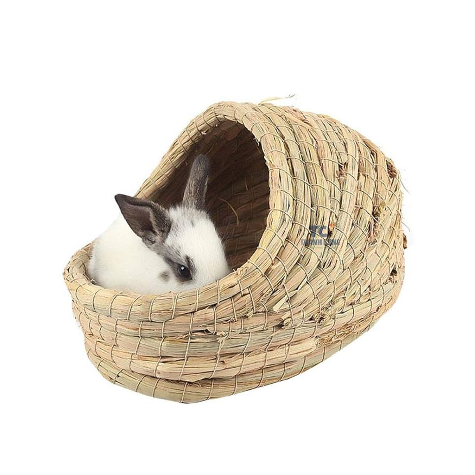 บ้านหญ้ากระต่ายทำด้วยมือสำหรับซ่อนหญ้าธรรมชาติกินได้บ้านของเล่นที่สะดวกสบายสำหรับกระต่ายหนูตะเภาและสัตว์ขนาดเล็ก
