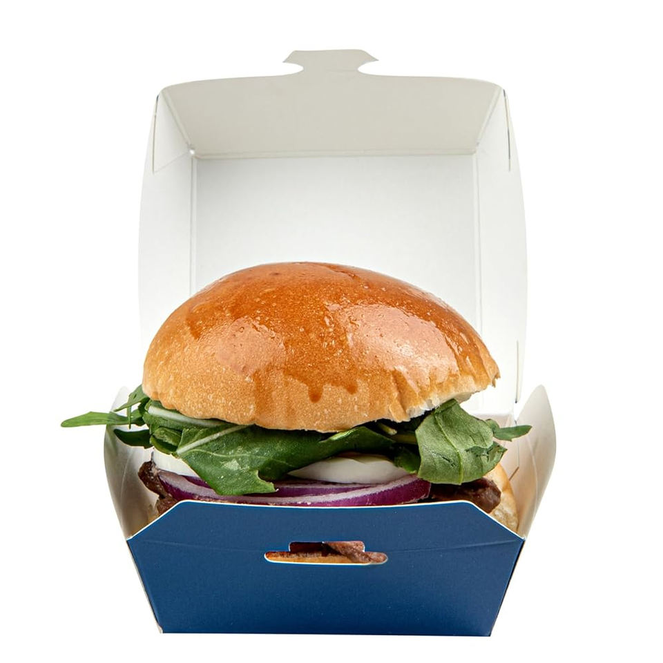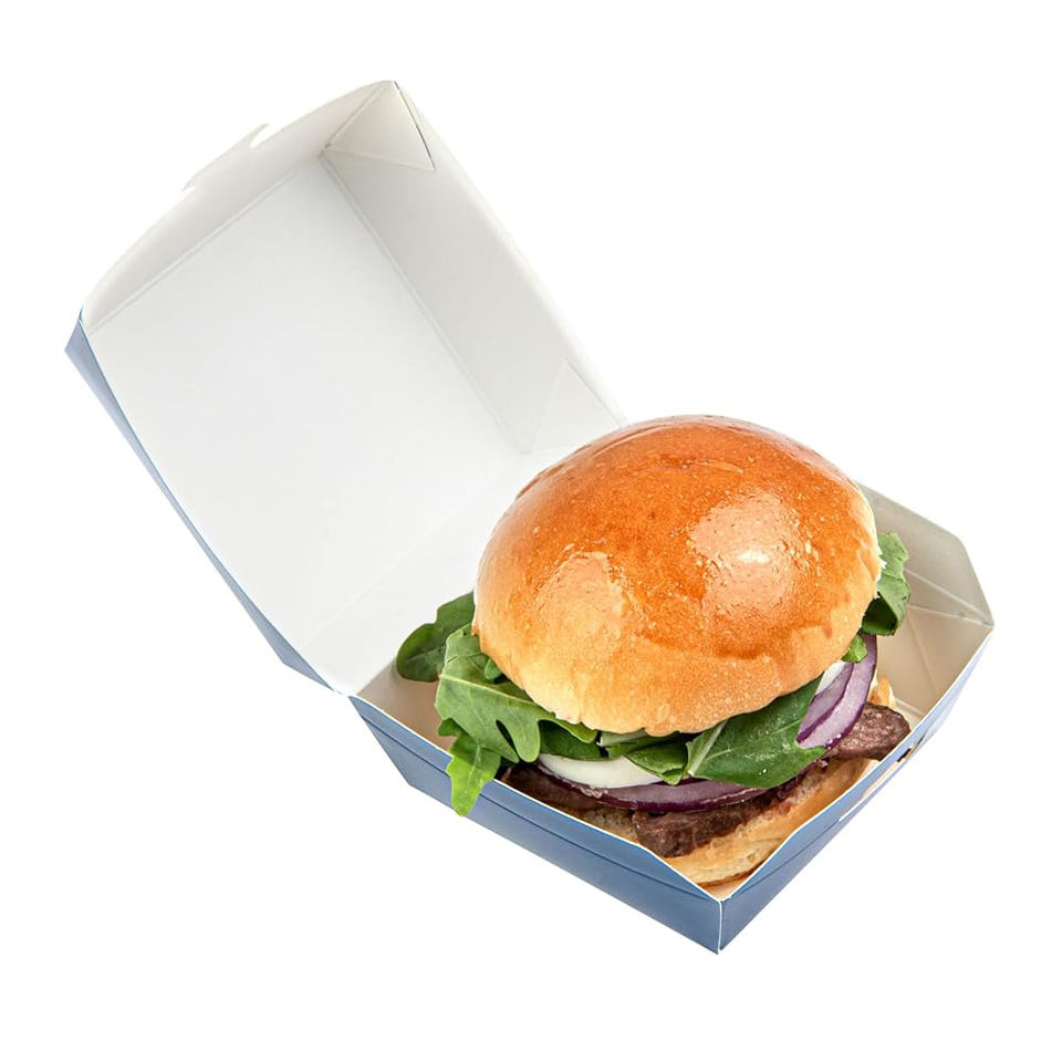 กล่องเบอร์เกอร์6x6นิ้วกล่องกระดาษลูกฟูกสี่เหลี่ยมขนาดเล็กสำหรับใส่เค้กคุกกี้กล่องเบอร์เกอร์สำหรับงานปาร์ตี้