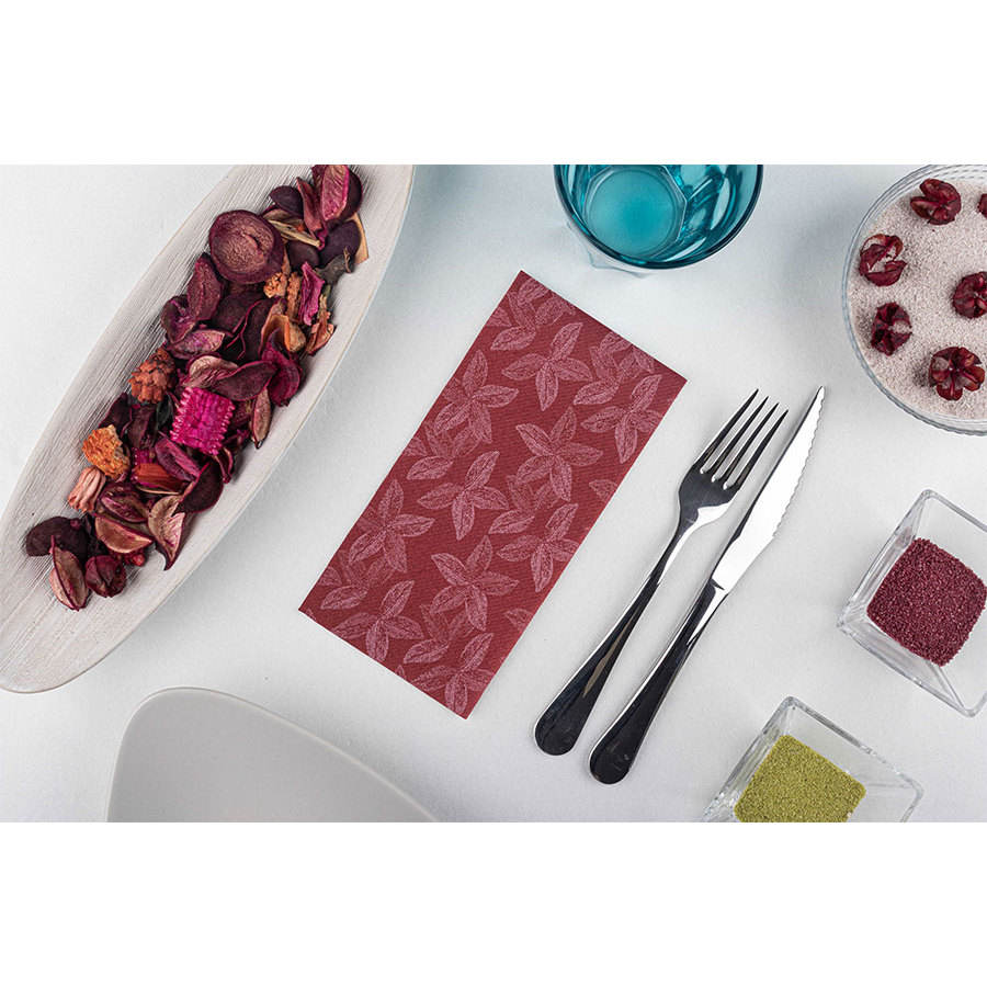กระดาษเช็ดปากพิมพ์ลายใบไม้สีเบอร์กันดี ขนาด 40x40 ซม. พับ 1/8 กระดาษเช็ดปากเนื้อนุ่ม แห้งไว 480 ชิ้น สำหรับธุรกิจ B2B