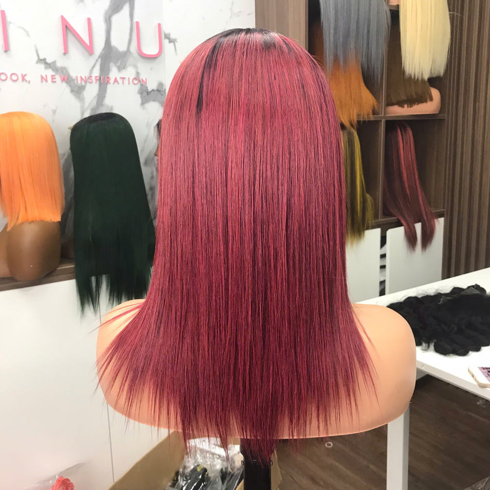 Burgundy Color Bone Straight Super Double Drawn Lace Front Wig for Women Vietnamese Human Hair Wholesale Price Factory Vendor S