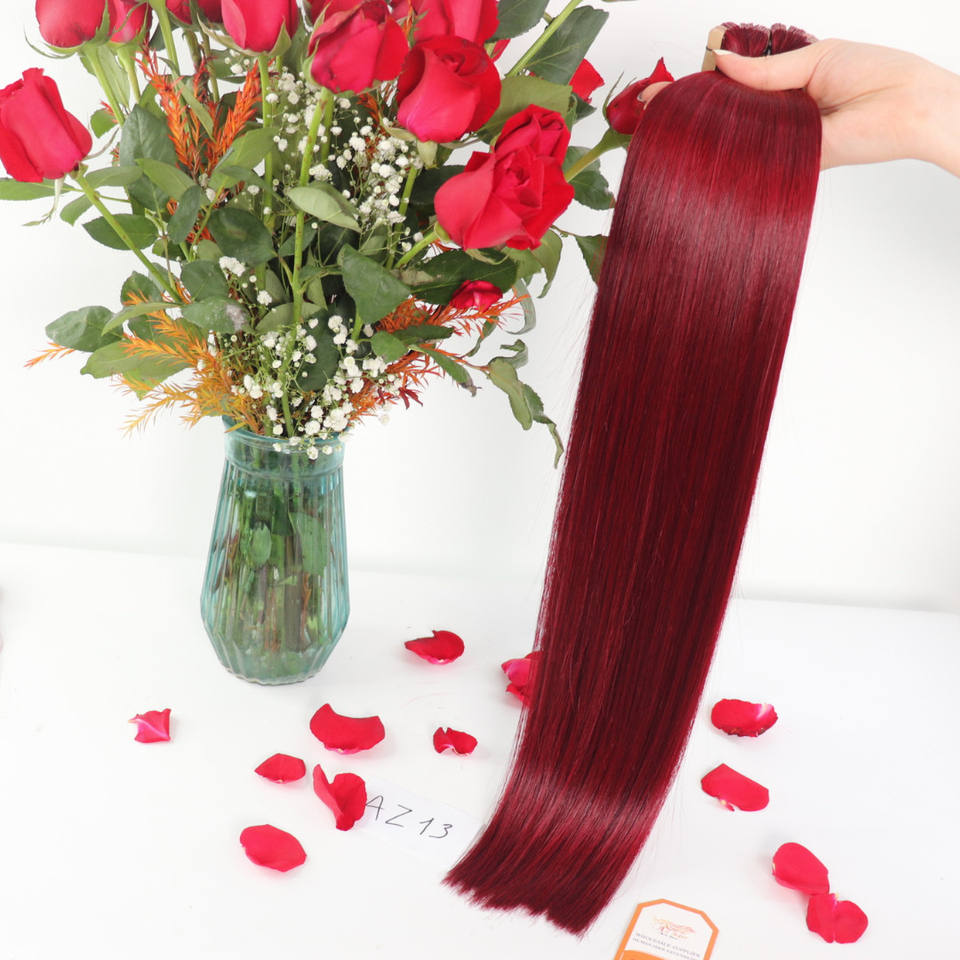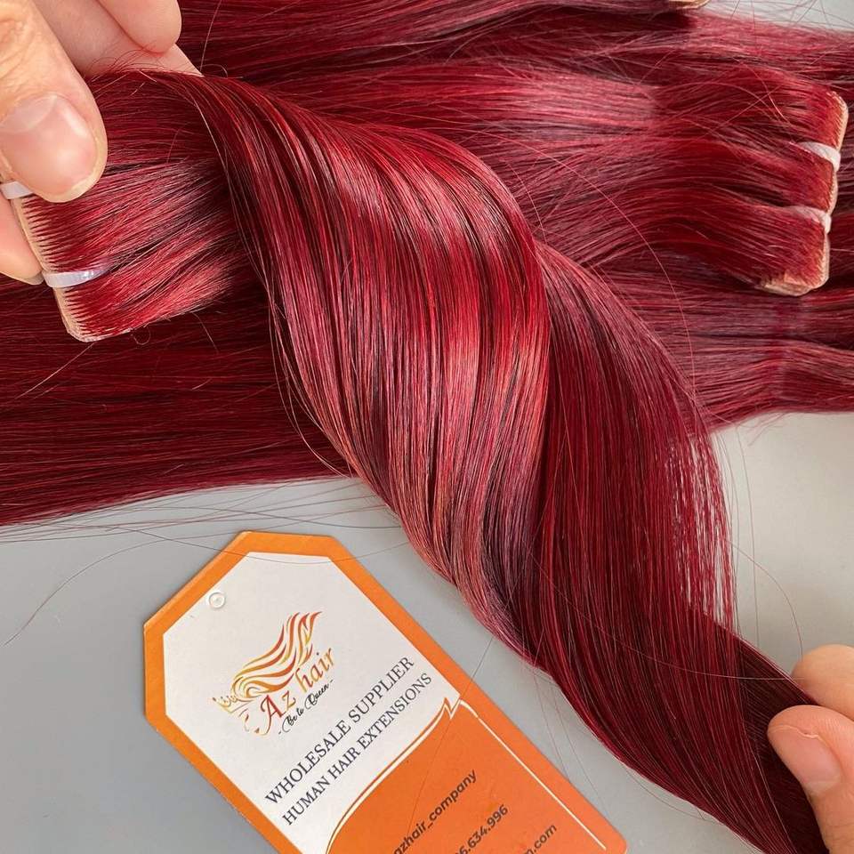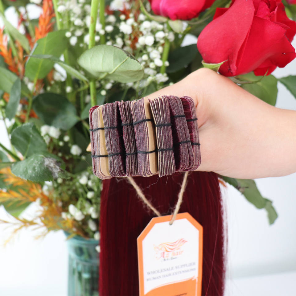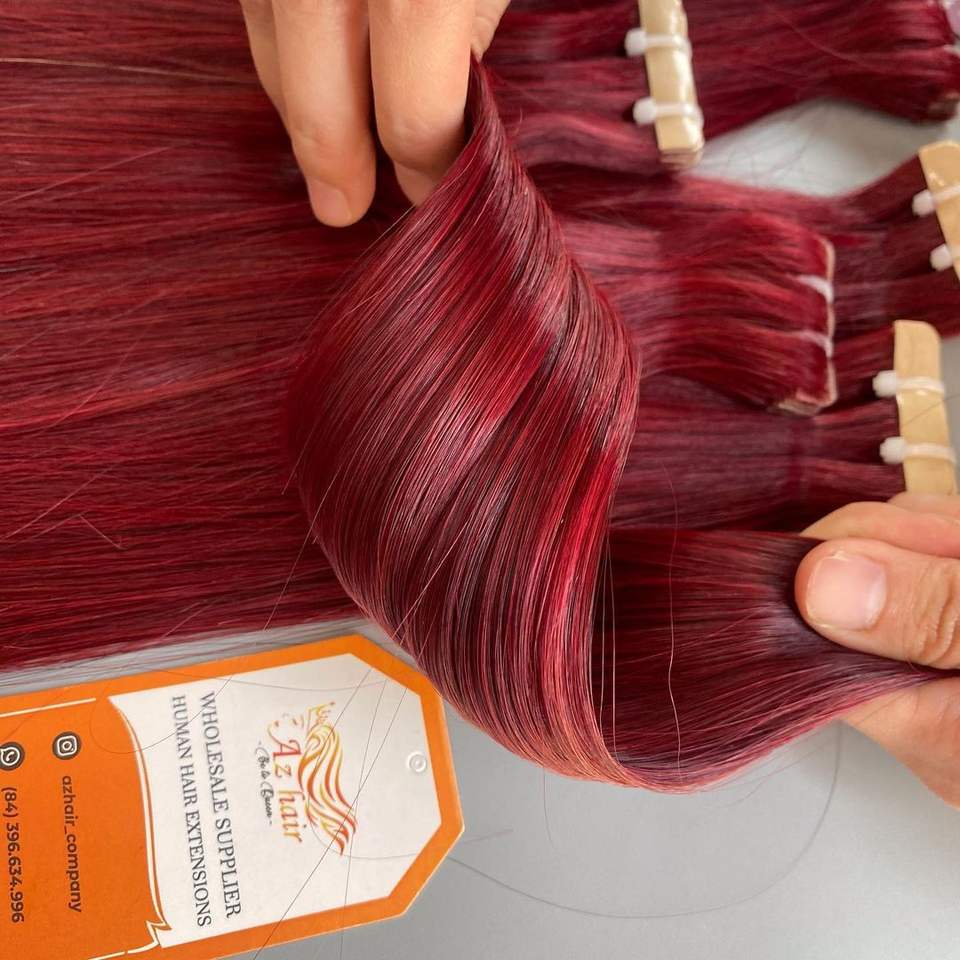 ผมต่อสีเบอร์กันดี เรมี่แท้ ไม่ผ่านการแปรรูป เกรดเวอร์จินเวียดนาม 12A คุณภาพสูงสุด แบบเทปติดเอง แบบดับเบิ้ลเวฟท์ 100 กรัม