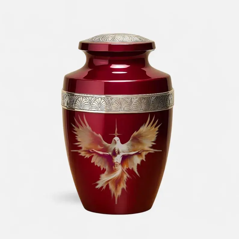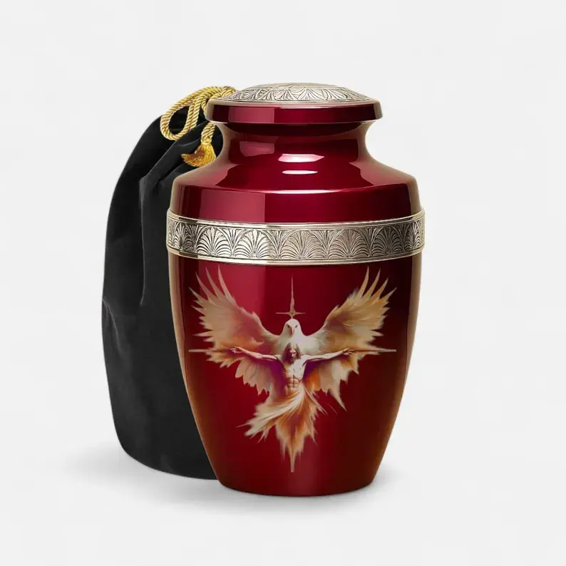 โกศเผาศพสีเบอร์กันดี สำหรับบรรจุอัฐิมนุษย์ ขนาดผู้ใหญ่ พร้อมถุง