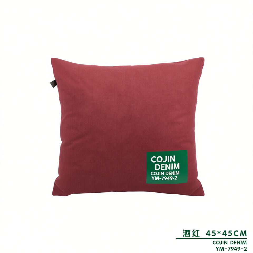 หมอนอิงผ้าเดนิมเบอร์กันดี 45*45 ซม. สำหรับเบาะนั่ง ทันสมัยและสะดวกสบาย
