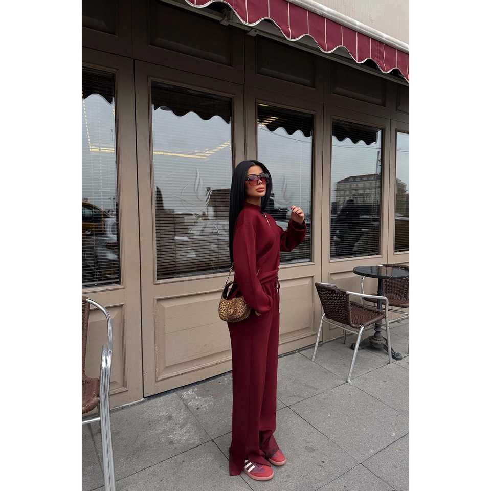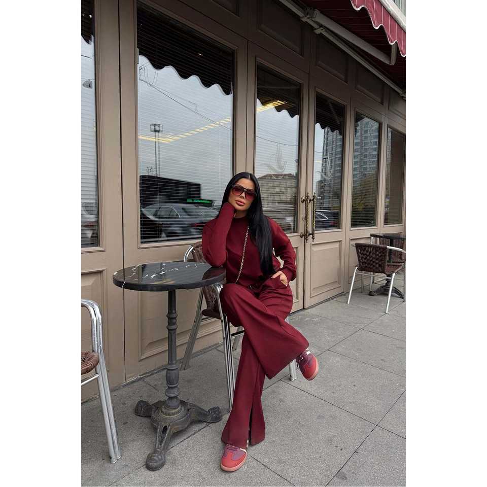 ชุดสูทกางเกงสีแดงเบอร์กันดี