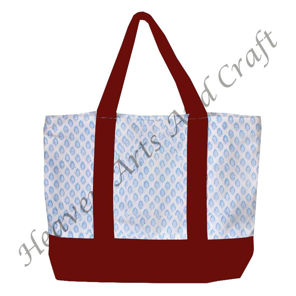 กระเป๋าโท้ทลายพิมพ์บล็อกสีเบอร์กันดี ผลิตในอินเดีย ลายดอกไม้หลากหลายแบบ ทนทาน มีสายสะพายสองข้าง ขายส่ง BHCB029