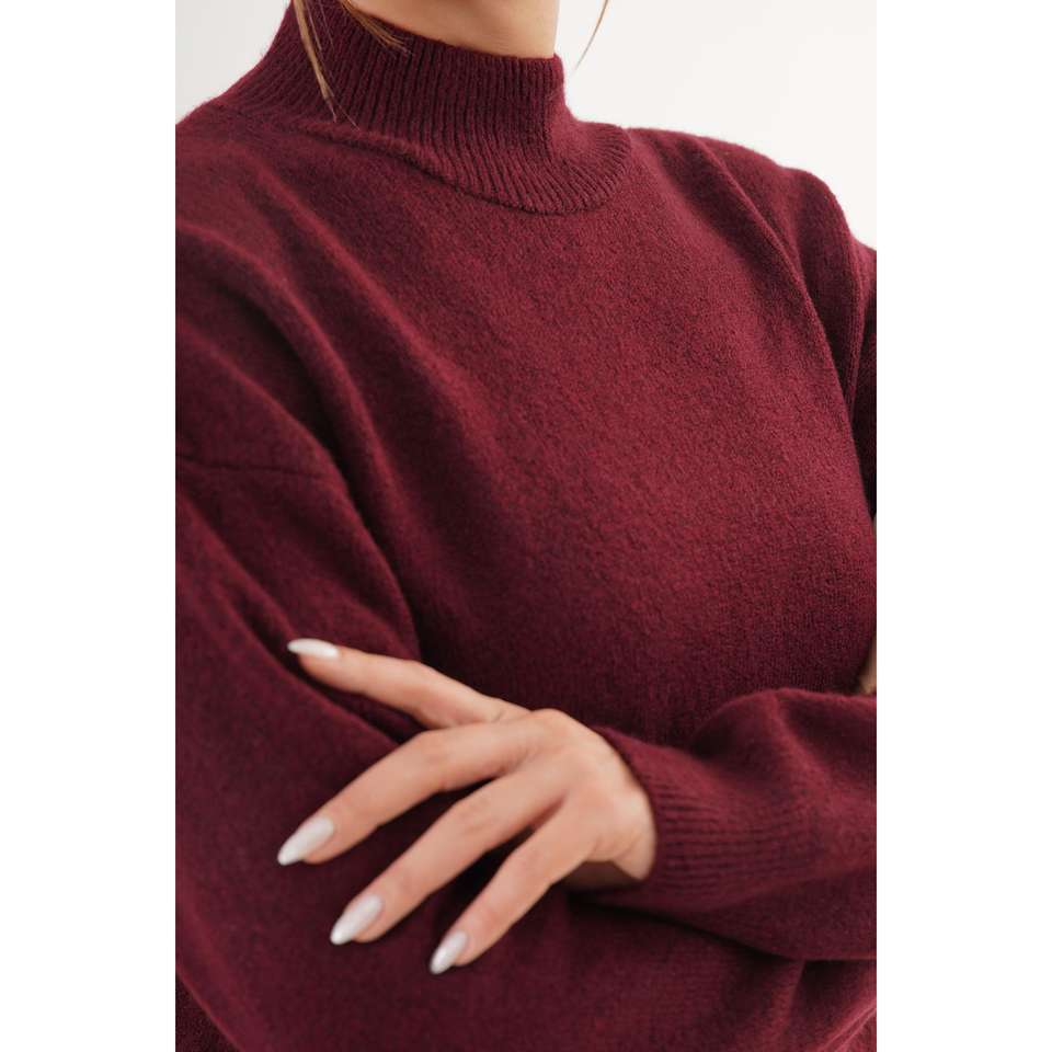 เสื้อสเวตเตอร์ไหมพรมคอสูงสีเบอร์กันดีสำหรับผู้หญิง สวมใส่สบาย ไม่เป็นขุย 14 กรัม 320 กรัม ขอบสี