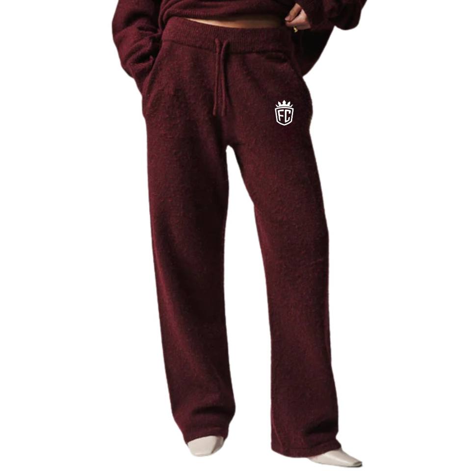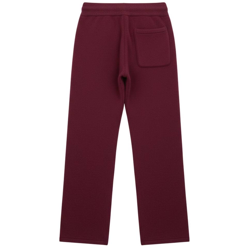 กางเกงจ็อกเกอร์ถักสีเบอร์กันดี ยูนิเซ็กซ์ เนื้อผ้านุ่ม กางเกงวอร์มเอวยางยืด สวมใส่สบายๆ สไตล์ลำลอง สตรีทแวร์ อุ่นสบายสำหรับฤดูหนาว มีไซส์สั่งทำได้