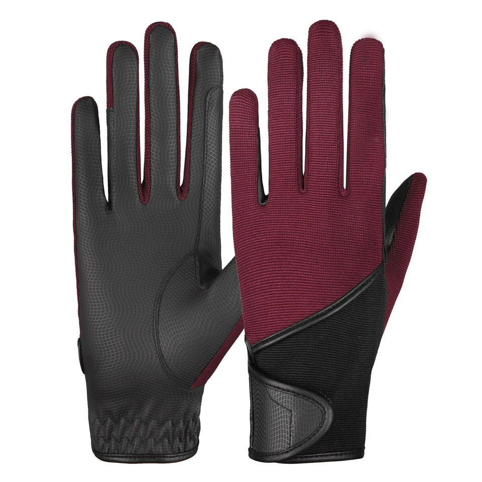 ถุงมือขี่ม้าหนังเบอร์กันดีแบบห้านิ้วสำหรับผู้หญิง กันลื่น PU สำหรับกีฬาขี่ม้ากลางแจ้ง รับทำโลโก้ตามสั่ง โรงงานผลิตโดยตรง