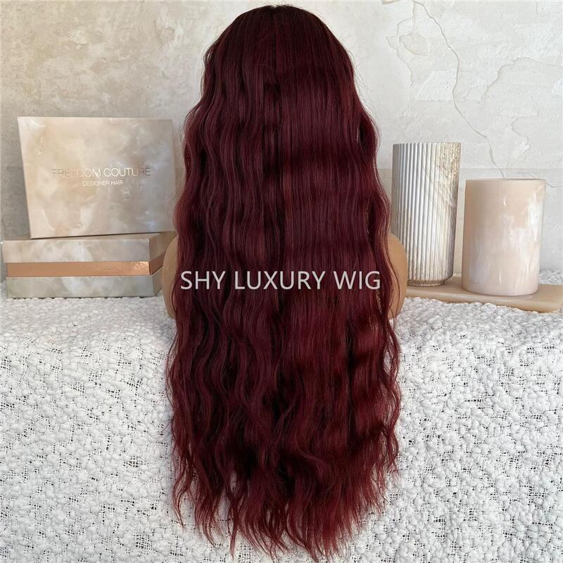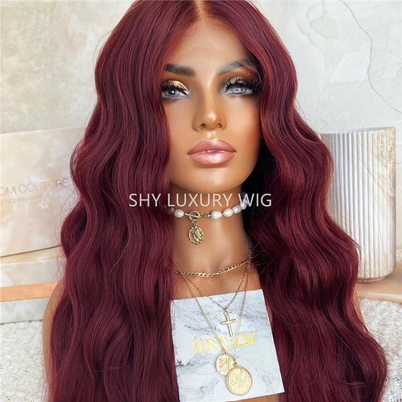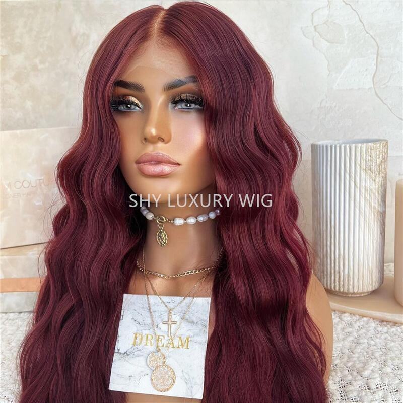 วิกผมแท้แบบลูกไม้โปร่งใสสีเบอร์กันดี ลอนธรรมชาติ HD สำหรับผมหน้าผากลูกไม้ ผมยุโรปแท้ Remy Virgin ยาว 26 นิ้ว พร้อมผมเบบี้แฮร์