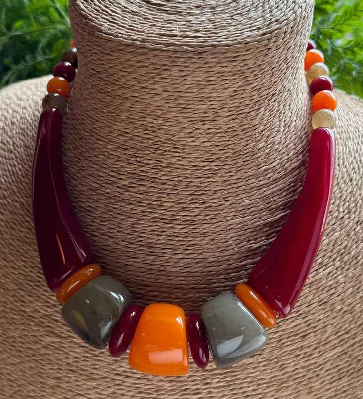 Burgundy Orange Grey Acrylic Resin Necklace Geometric Chunky Bead Jewelry Plastic Tube Bib Neck Accessories Female Apparel