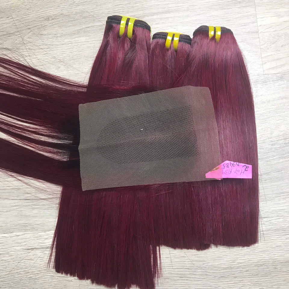 ผมต่อเนื้อทรงตรงเนื้อสีธรรมชาติของคนเวียดนามสีม่วงเบอร์กันดี