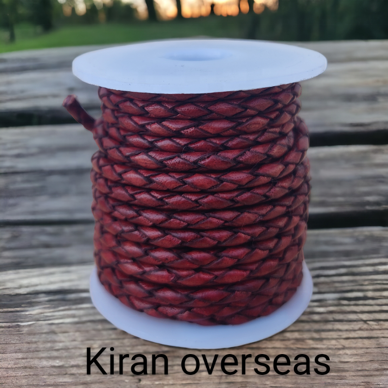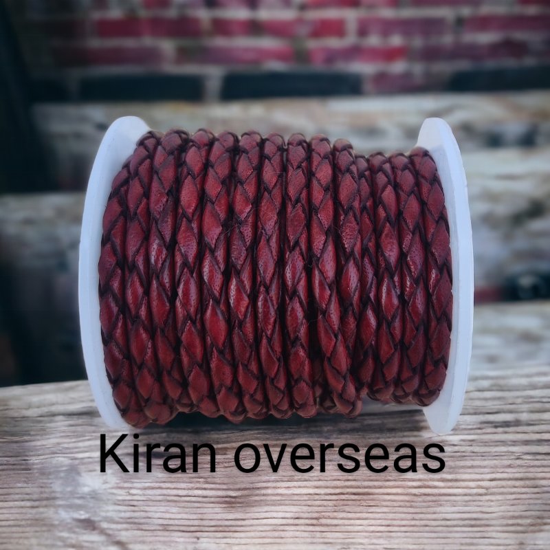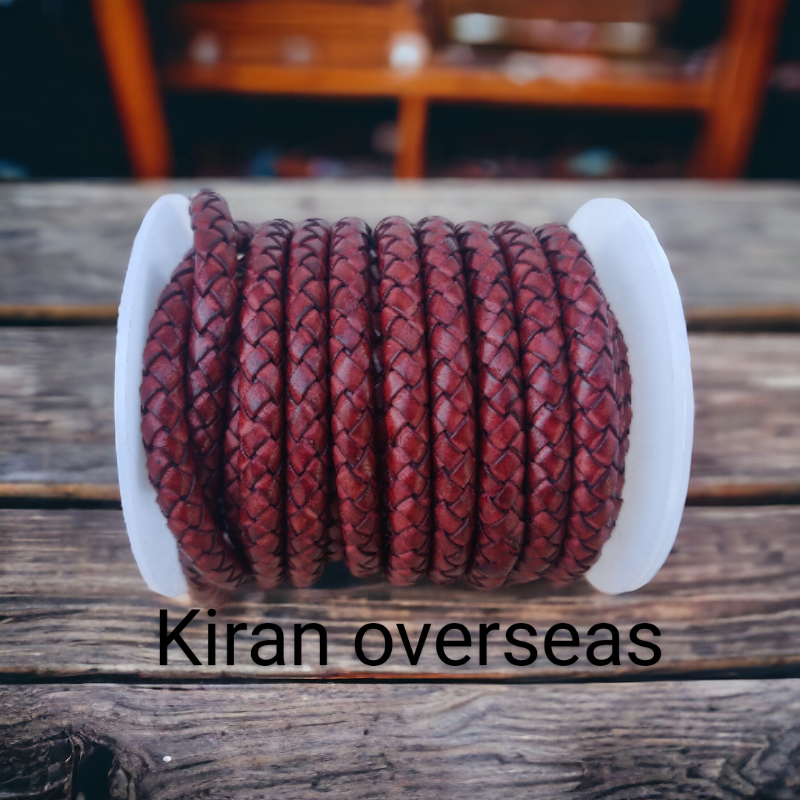 สายหนังวัวถักโบโลทรงกลมเบอร์กันดีทำด้วยมือสำหรับทำเครื่องประดับทันสมัยและการค้นพบที่สำคัญขนาด3มม.-12มม.