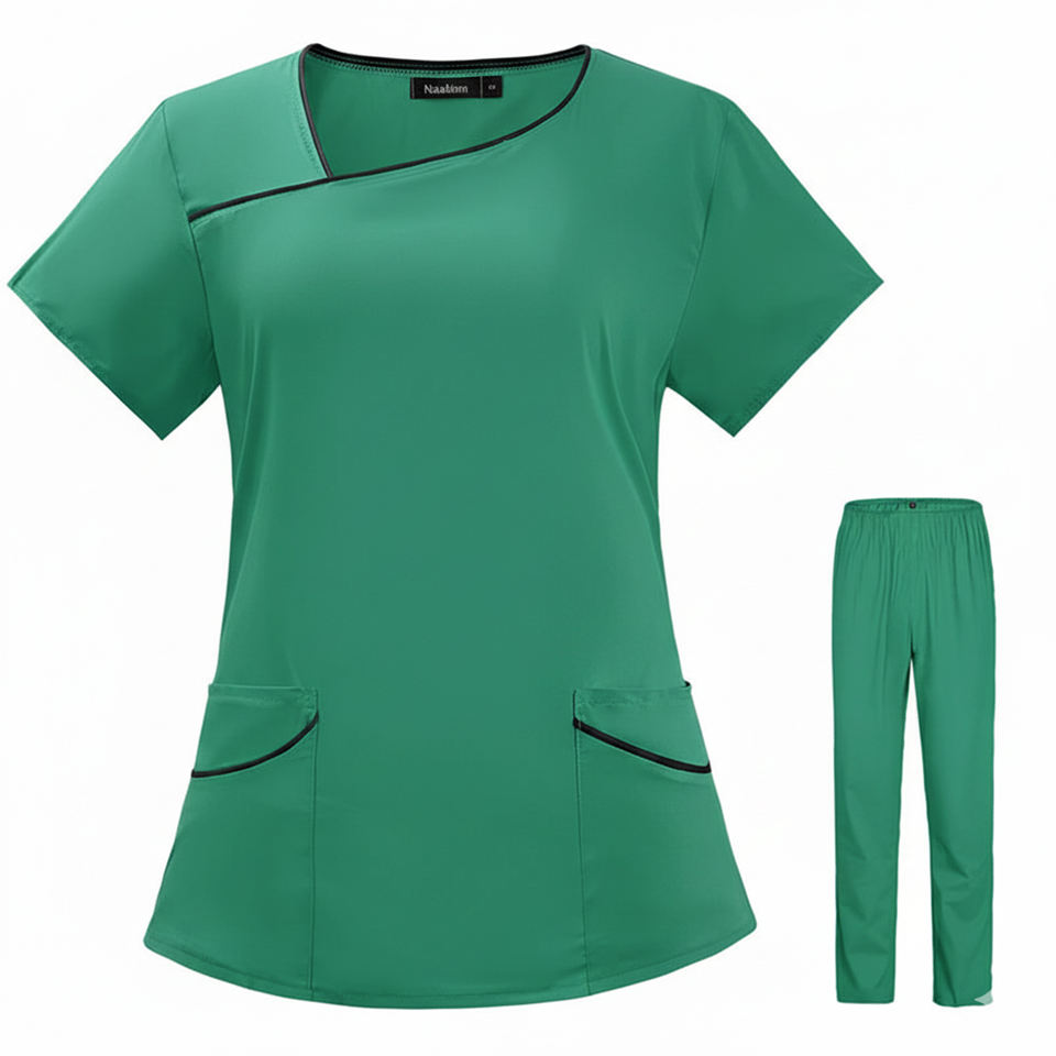 ชุดสครับเบอร์กันดีวัสดุคอวีแบบคลาสสิกดูแลง่ายมีกระเป๋าสำหรับเจ้าหน้าที่ทันตกรรมดูแลสุขภาพและสัตวแพทย์
