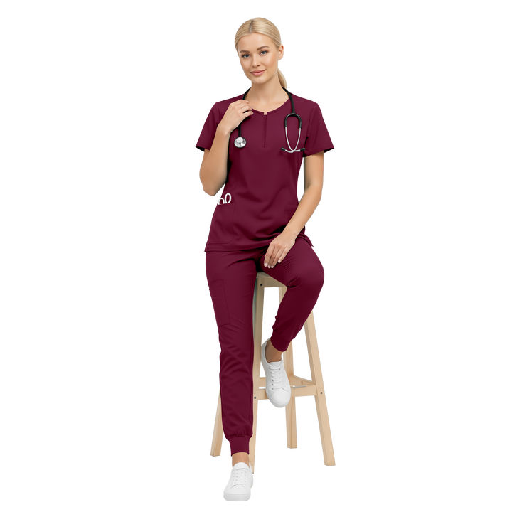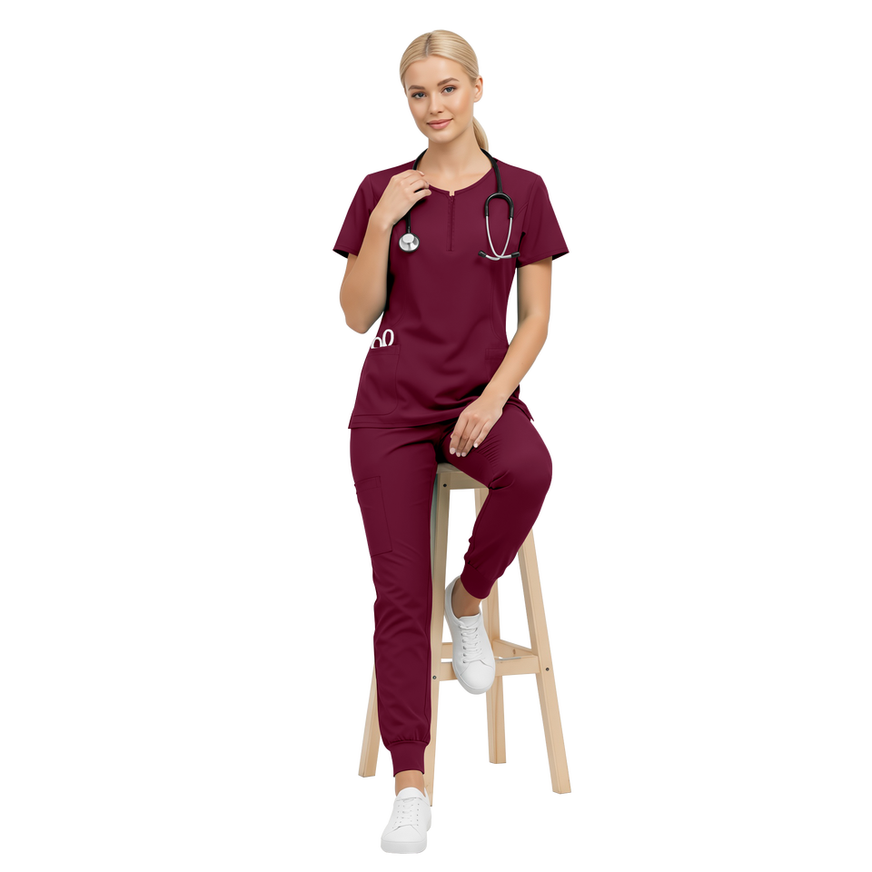 ชุดยูนิฟอร์มสีเบอร์กันดีสำหรับผู้หญิง ชุดสครับสำหรับพยาบาล ชุดทำงานสำหรับร้านเสริมสวย ชุดสครับทางการแพทย์ ชุดสครับสำหรับสปา ชุดแพทย์ ชุดพยาบาล ชุดคลินิก
