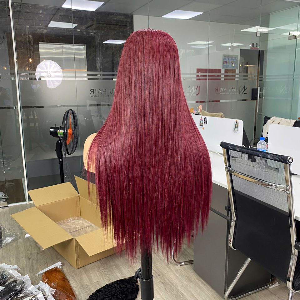 วิกผมสีเบอร์กันดี ผมตรงธรรมชาติ วิกผมหน้าผากติดลูกไม้ ผมแท้ธรรมชาติ ขายส่ง คุณภาพสูง ผมแท้ 100%