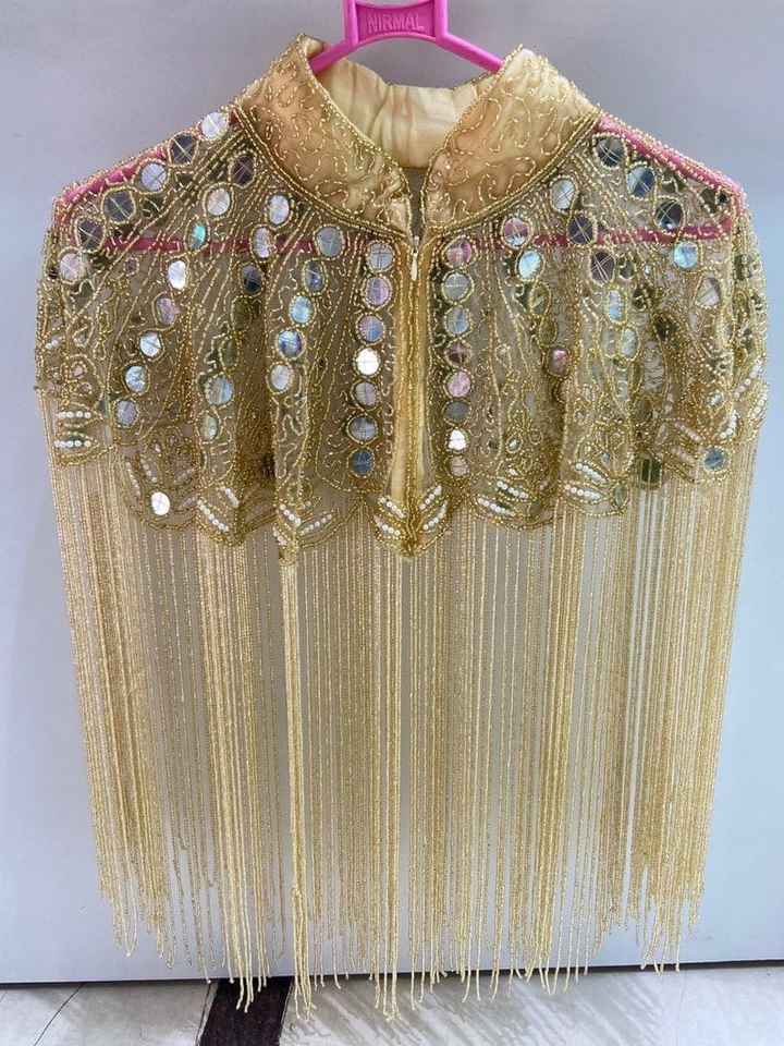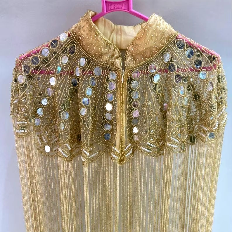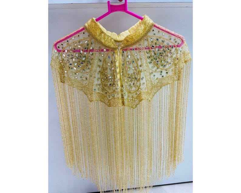 Burlesque Cape Fastened Neck Beautiful Festival Outfit for Club Straight Beaded Strands Sequins Embroidery Pearl Decorations