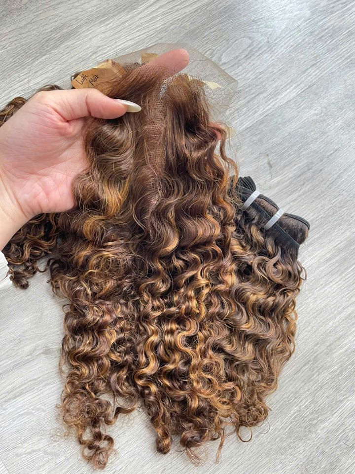 ผมมนุษย์แท้สีน้ำตาลเปียกันแบบพม่า คุณภาพสูง ขายส่ง ผมมนุษย์แท้ 100%