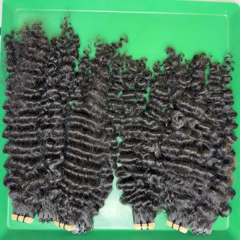 เทปอิน/มัดหยิกพม่าพร้อมสีธรรมชาติ 1B การทอผมเวอร์จินดิบต่อผมมนุษย์
