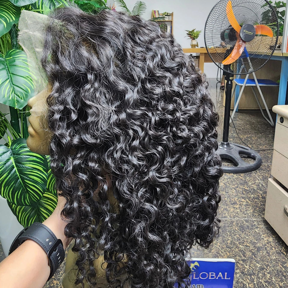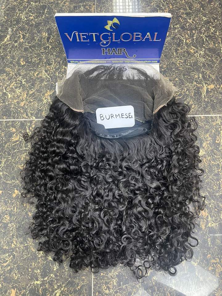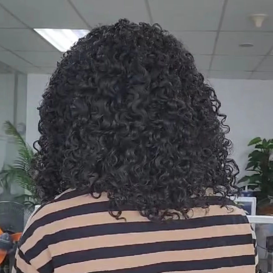วิกผมแท้ชาวพม่า Jerry ผมหยิกวิกผมมนุษย์ทำจากลูกไม้ด้านหน้า