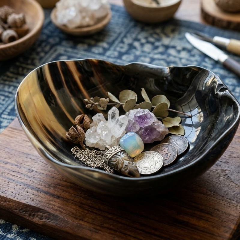 ชามเสิร์ฟทำมือจากเขาสัตว์ธรรมชาติรักษ์โลก | จานลายเผาแบบศิลปะ | ภาชนะใส่อาหารในครัว น้ำหนักเบา ทนทาน ปลอดสาร BPA