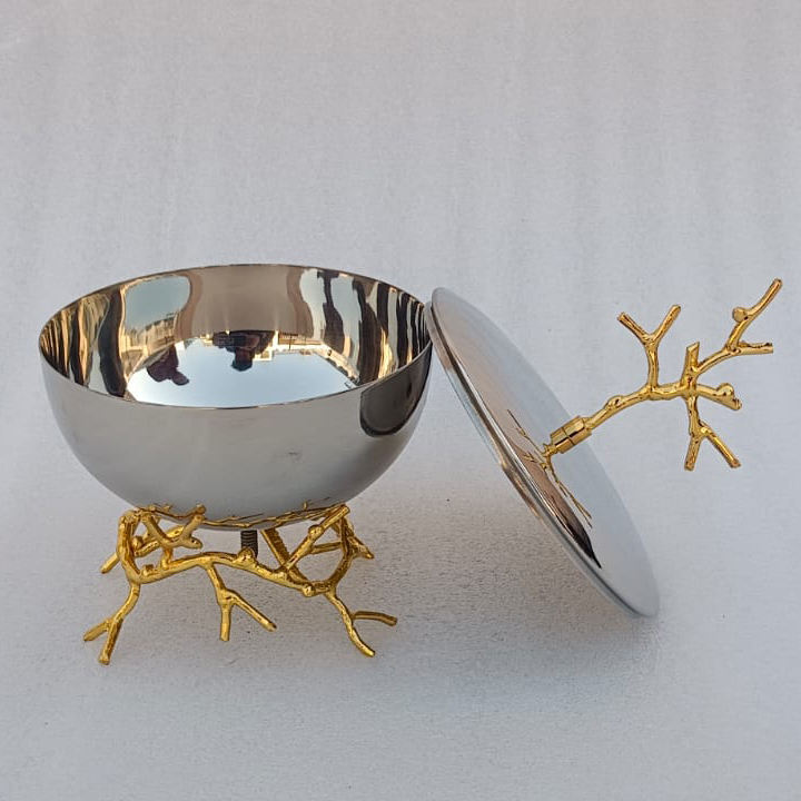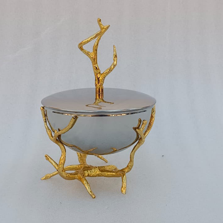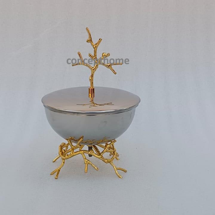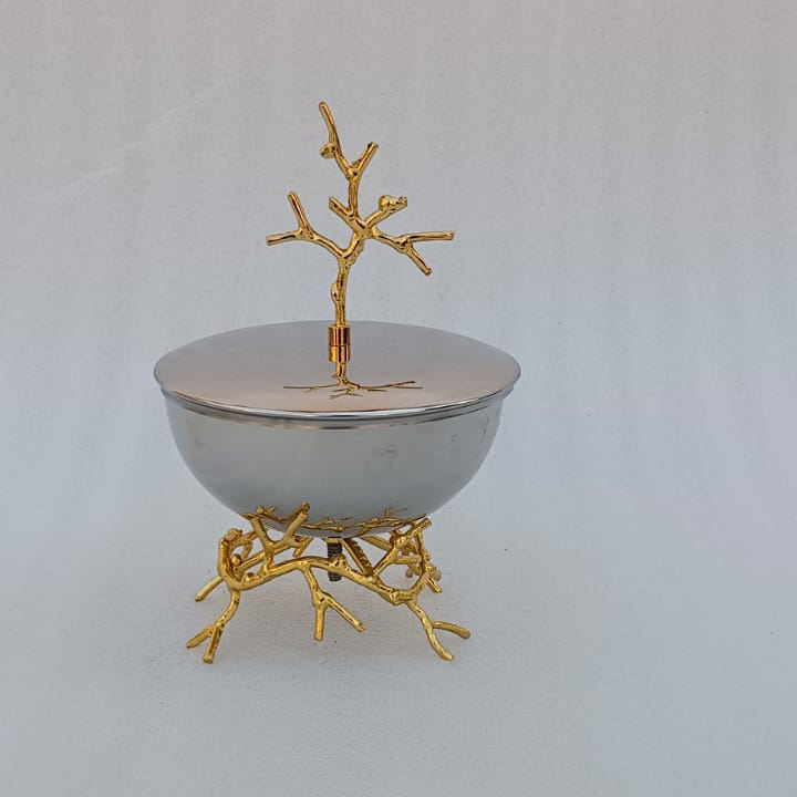 เตาเผาสแตนเลสพร้อมขาตั้งดอกไม้ทองเหลืองชุบทองสำหรับธูปมาบคารา ใช้สำหรับถ่านและพิธีกรรมทางศาสนา