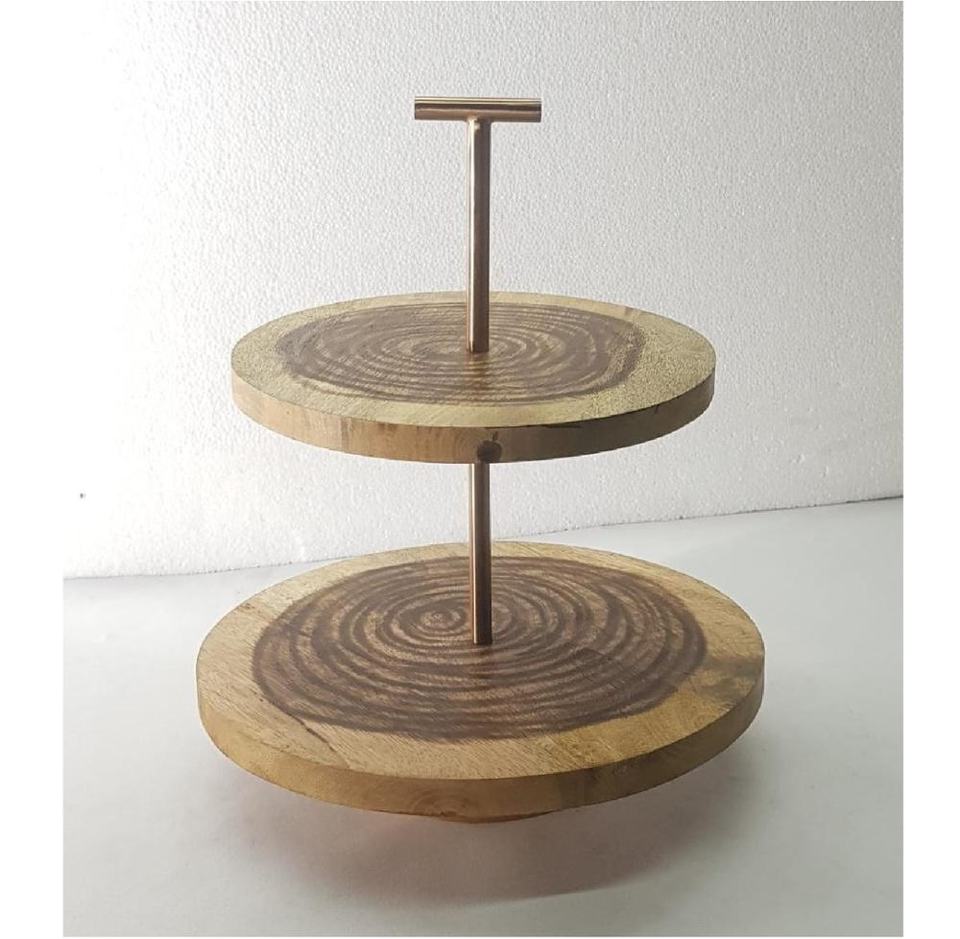 การออกแบบการเผาไหม้ไม้สองชั้นยืนเค้กตกแต่งการออกแบบที่ไม่ซ้ำกันรายการหัตถกรรมคอลเลกชันเครื่องมือเค้กไม้แท้