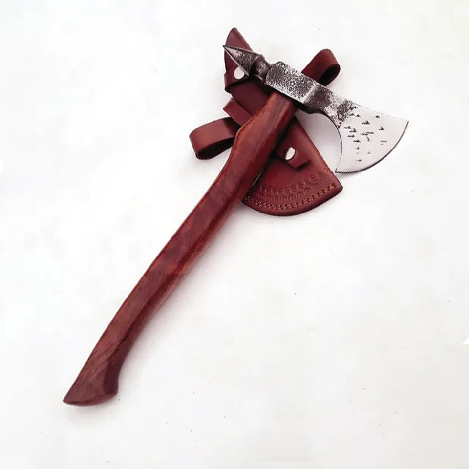 ขวานโทมาฮอว์ก Burraq ขนาด 16 นิ้ว ทำมือจากเหล็กกล้าคาร์บอน ด้ามไม้พะยูง สำหรับงาน DIY อุตสาหกรรม แคมป์ปิ้ง กิจกรรมกลางแจ้ง ของขวัญวันพ่อ