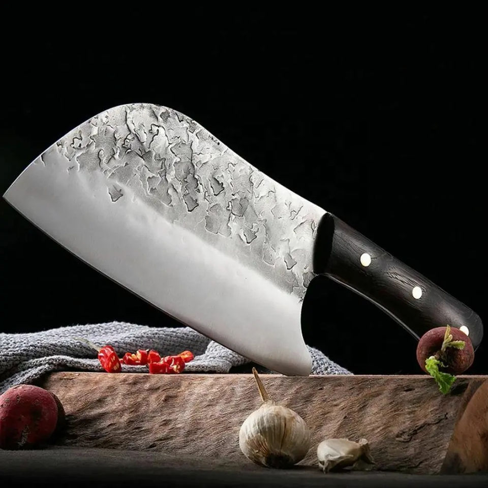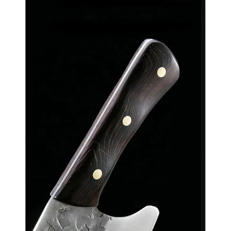 มีดเชฟเหล็กกล้าคาร์บอนทำมือ Burraq พร้อมด้ามไม้และปลอกหนังอเนกประสงค์ สำหรับงานครัว DIY OEM/ODM