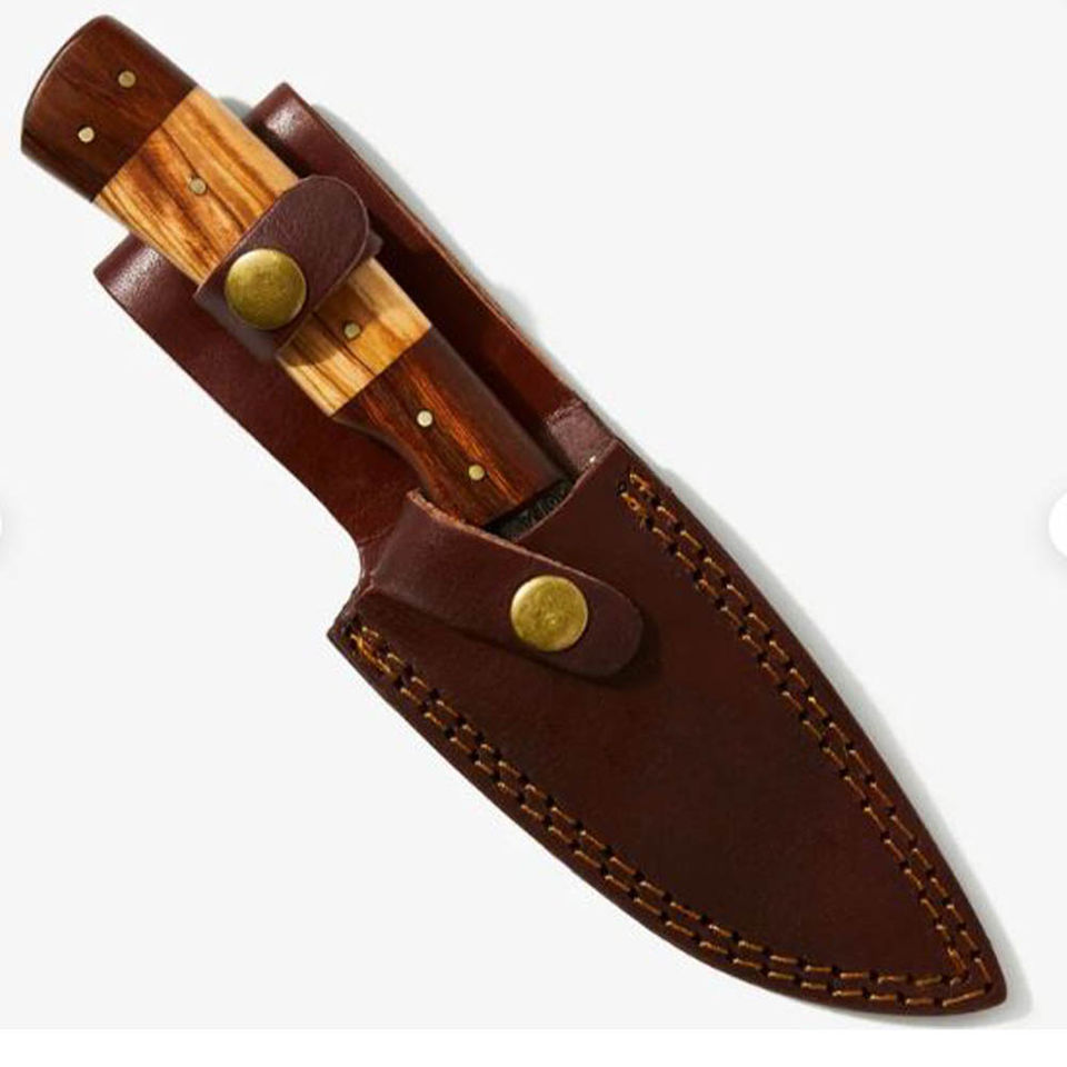 มีดสกินเนอร์อเนกประสงค์ Burraq ผลิตด้วยมือจากเหล็ก D2 ขนาด 9 นิ้ว ด้ามไม้ ปลอกหนัง พร้อมบริการ OEM/ODM/DIY คุณภาพเยี่ยม