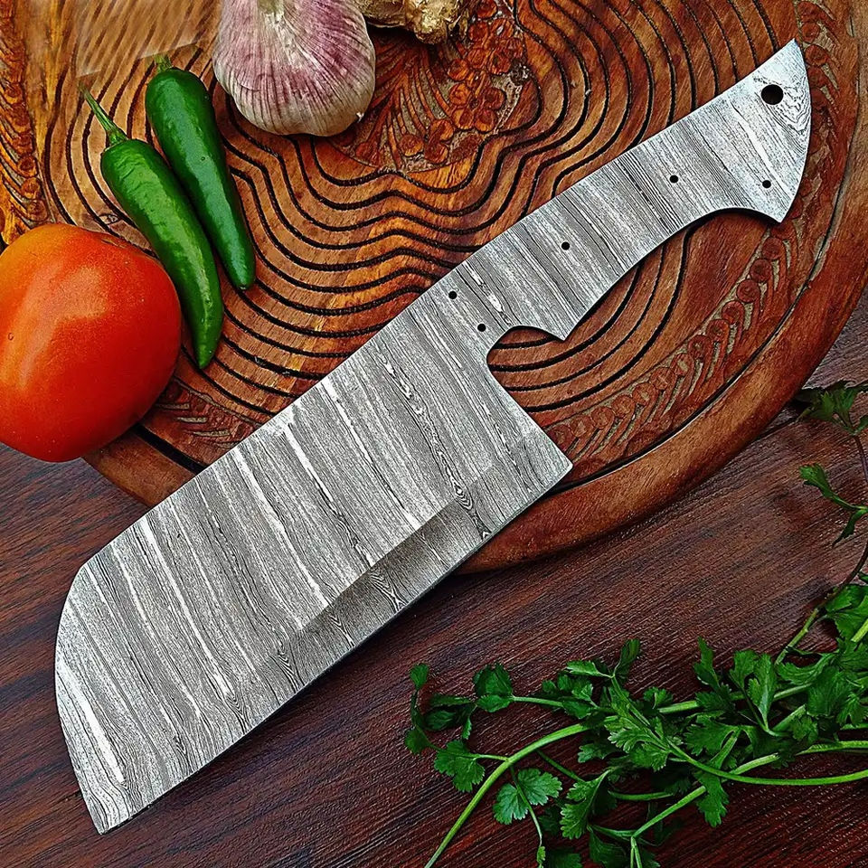 ใบมีดเหล็กดามัสกัสทำมือ Burraq OEM ลายหยดน้ำอเนกประสงค์ ขนาด 7.5 นิ้ว เหมาะสำหรับทำมีด DIY ของขวัญสุดเพอร์เฟกต์สำหรับกิจกรรมกลางแจ้ง