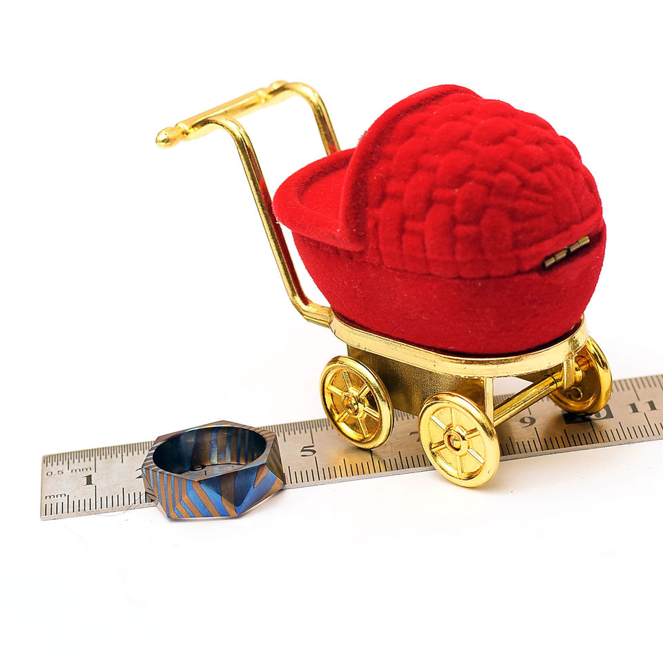 แหวนแต่งงานแบบคลาสสิกทำมือจากเหล็กดามัสกัส Burraq พร้อมกล่องใส่แหวน - ของขวัญที่สมบูรณ์แบบสำหรับคุณพ่อ/สามี/แฟนหนุ่ม OEM