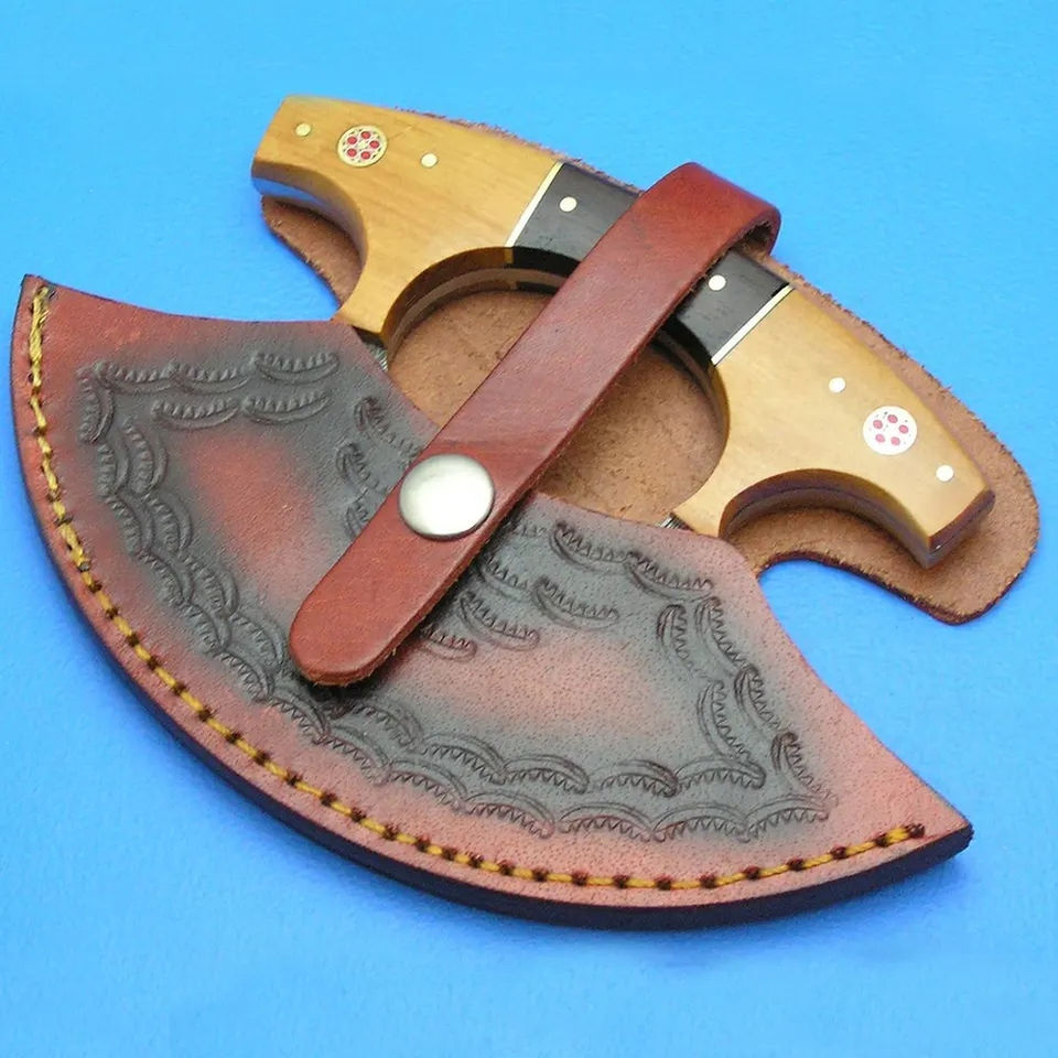 Burraq ปลอกหนังแบบมีดเหล็กดามัสกัส, มีดเหล็กแบบเต็มรูปแบบด้ามจับเหล็กดามัสกัสตัดพิซซ่า