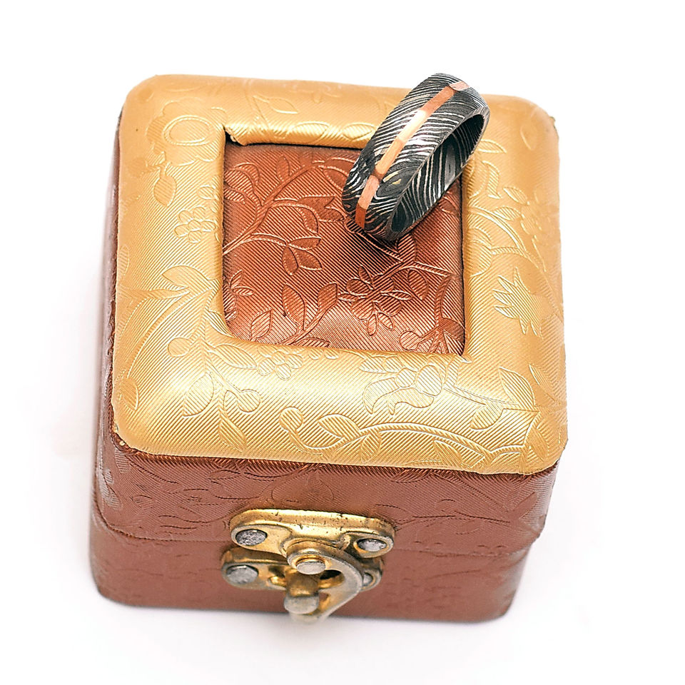 กล่องแหวนเหล็กดามัสกัส 8 มม. แบบคลาสสิก ทำมือ งานฝีมือ ของ Burraq DIY ของขวัญที่สมบูรณ์แบบสำหรับคุณพ่อ สามี แฟน รองรับการปรับแต่งแบบ OEM