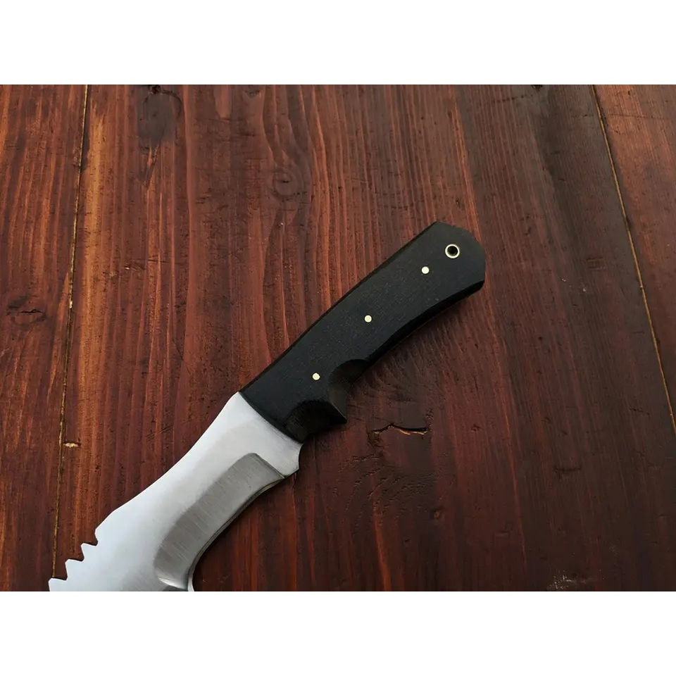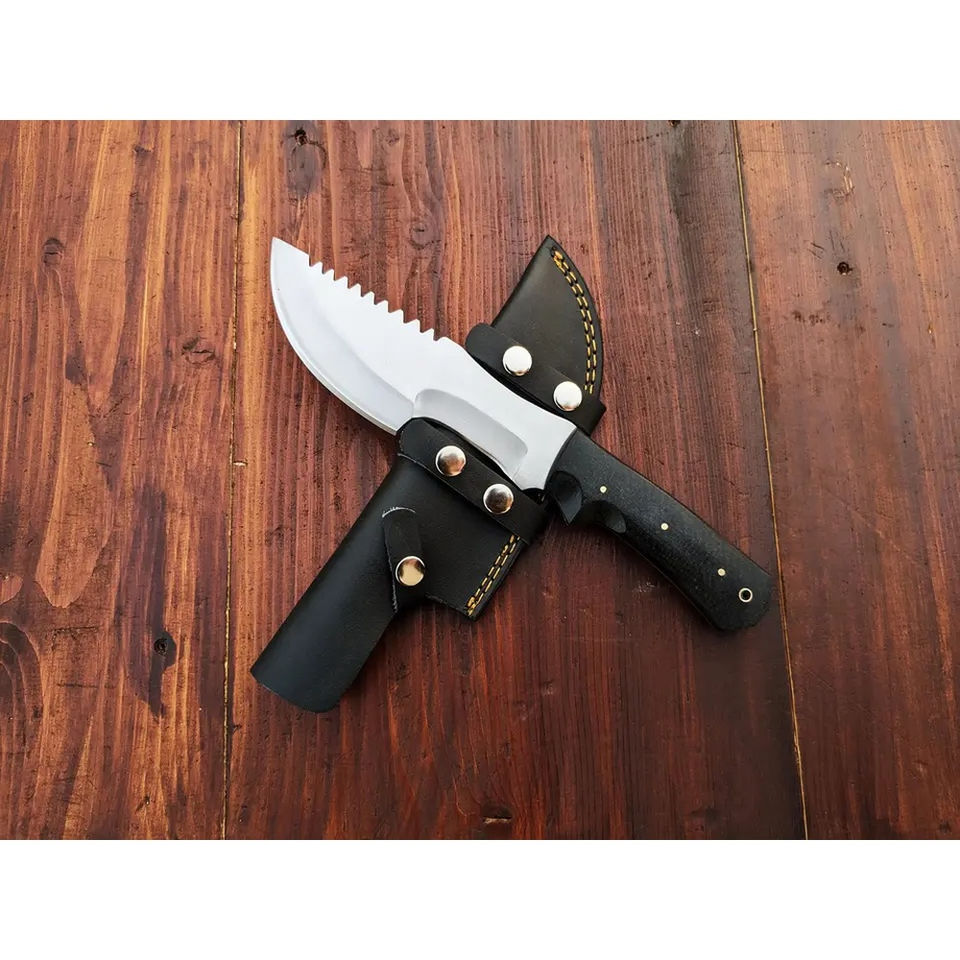 มีดแทรคเกอร์ Burraq OEM DIY ทำมือ ขนาด 12 นิ้ว เหล็ก D2 ด้ามไมคาร์ต้า ลายตอกแบบ Hammered Texture พร้อมปลอกหนัง