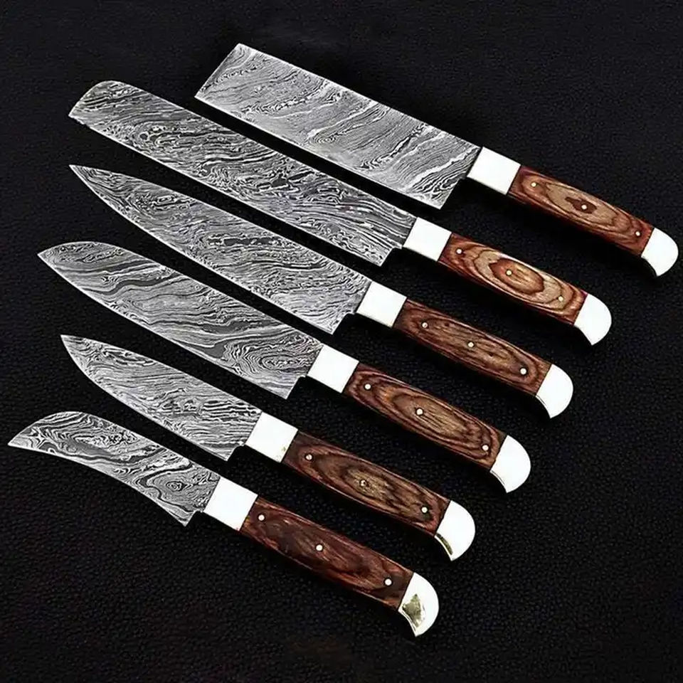 ชุดมีดเชฟ Burraq Professional ผลิตด้วยมือจากเหล็กคาร์บอนและเหล็กดามัสกัส 6 ชิ้น ด้ามไม้ ใช้งานได้ทั้งมือซ้ายและขวา เป็นมิตรต่อสิ่งแวดล้อม ใช้กับเครื่องล้างจานได้