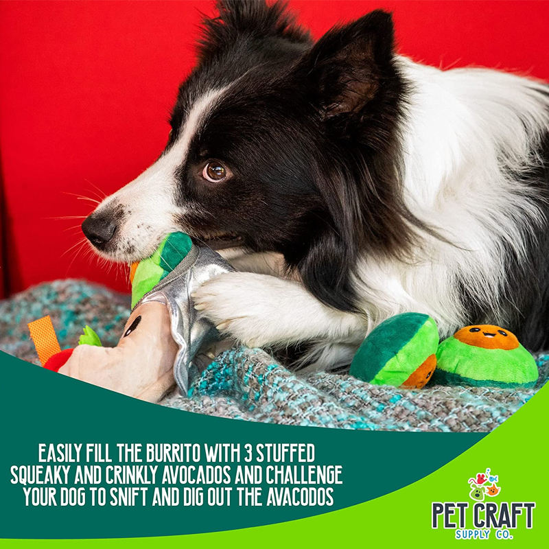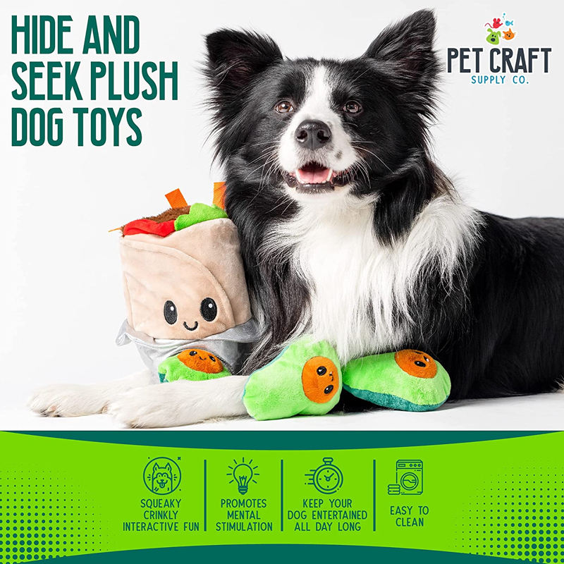 ชุดของเล่นสุนัขรูปเบอร์ริโตอะโวคาโด ของเล่นแบบยั่งยืน ของเล่นเสริมสร้างปฏิสัมพันธ์ ของเล่นฝึกสมอง ของเล่นเคี้ยวเล่น ซ่อนหา ของเล่นตุ๊กตาสำหรับสุนัข
