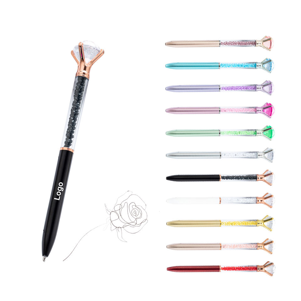 ปากกาลูกลื่นหมุนได้สำหรับโฆษณาธุรกิจ ทำจากพลาสติก ABS ประดับคริสตัลเพชร พร้อมโลโก้สั่งทำ ของขวัญส่งเสริมการขาย