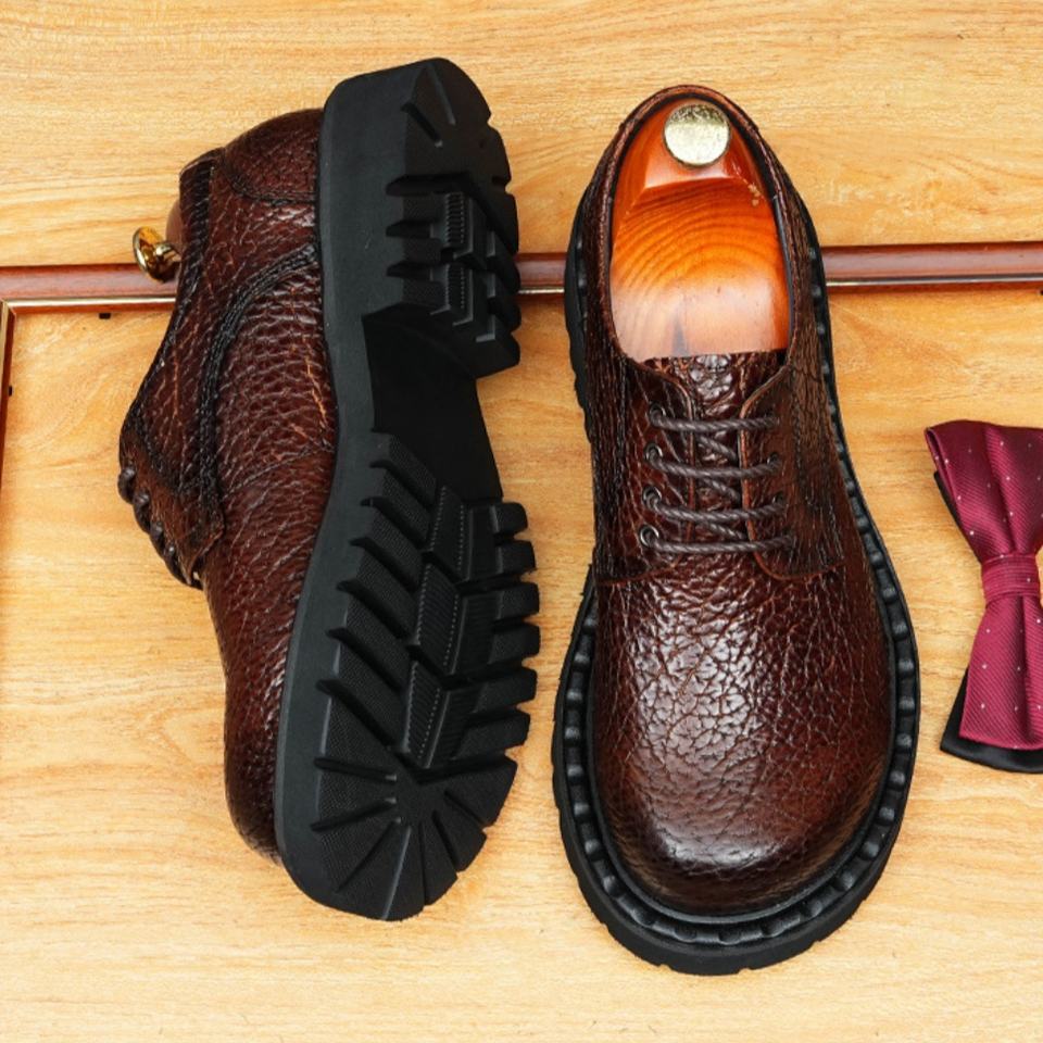 Business Casual Brogue Patchwork Pointed Toe Lace-Up Genuine Leather Versatile Men's Formal Wedding Shoes