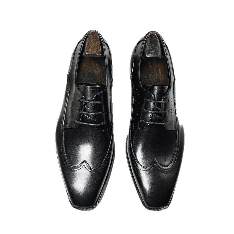 รองเท้าหนังแท้ทรงบร็อกแบบลำลองสำหรับธุรกิจ หัวกลม ผูกเชือก ตกแต่งลายปะติด กันน้ำ ใส่ได้หลากหลายโอกาส สำหรับผู้ชาย เหมาะสำหรับงานแต่งงาน