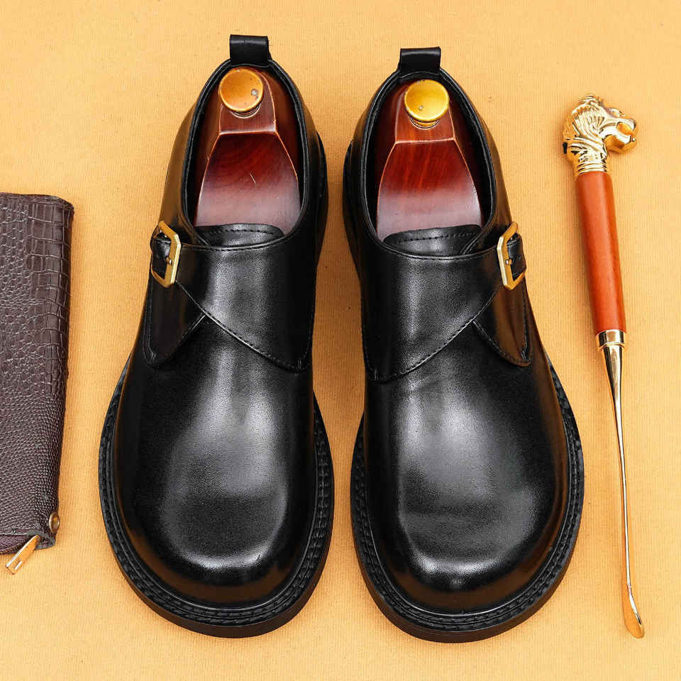 รองเท้าหนังแบบลำลองสไตล์อ็อกซ์ฟอร์ดสำหรับผู้ชาย รุ่นใหม่ปี 2025 แบบผูกเชือก หัวรองเท้าใหญ่ เหมาะกับเท้ากว้าง สวมใส่ง่าย สไตล์ทางการ สีเขียวอมน้ำตาล