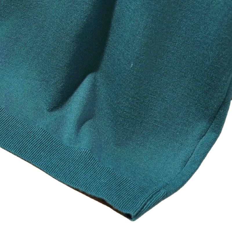 เสื้อสเวตเตอร์แบบสวมหัวสำหรับธุรกิจลำลองสำหรับผู้ชายเสื้อสเวตเตอร์คอโปโลแขนสั้นผ้า100% ระบายอากาศได้ดีเสื้อถักสีพื้นทรงหลวม